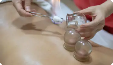 Cups are placed on the skin to create mild suction, improving blood flow and flushing toxins naturally.